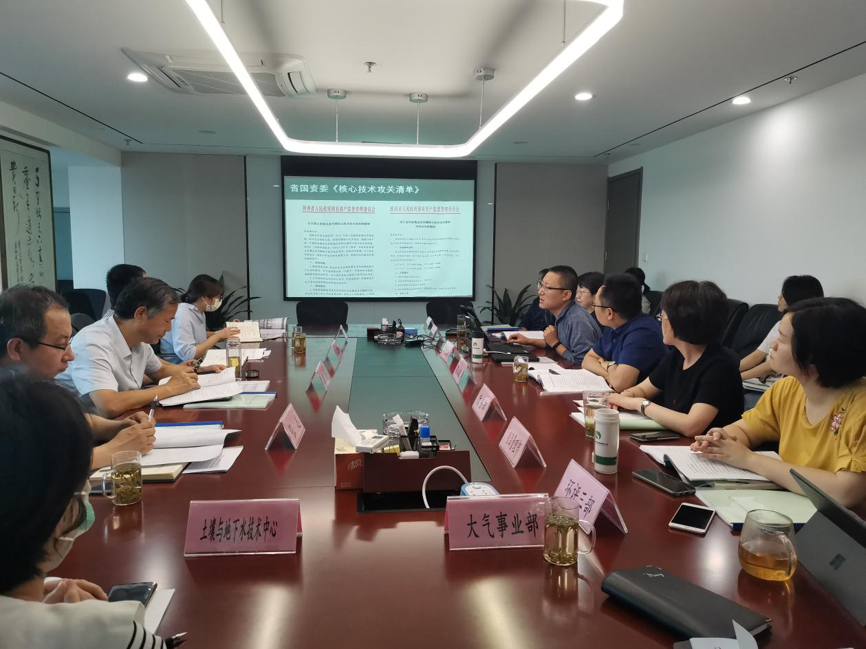 颜昊一行听取了中圣公司、环保公司科研工作开展情况和今年上半年科研项目进展情况的汇报。